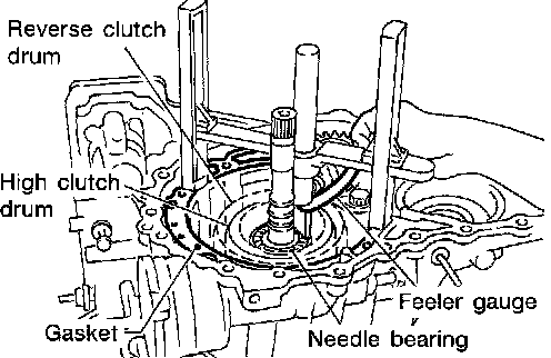 d. Measure gap between cylinder and plunger with feeler gauge. This measurement should give exact reverse clutch drum end play.