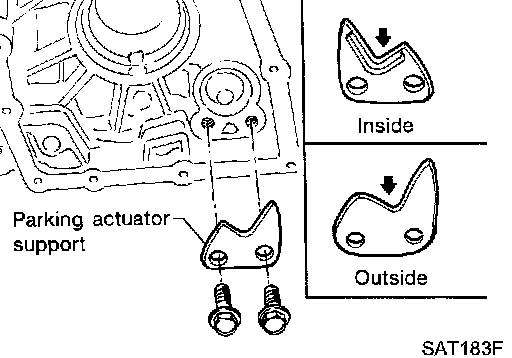2. Install parking actuator support to transmission case. Tighten parking actuator support bolts to the specified torque.