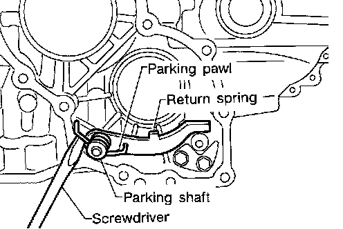 3. Install parking pawl on transmission case and fix it with parking shaft.