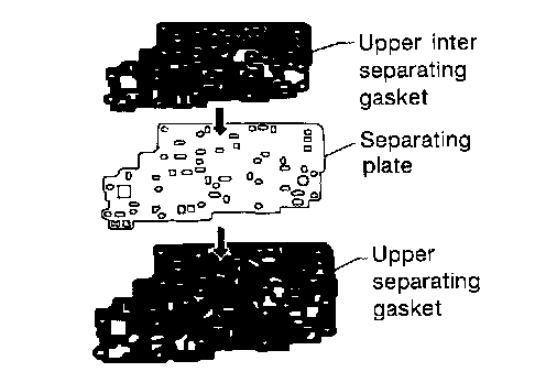 b. Install upper separating gasket, upper inter separating gasket and upper separating plate in order shown in illustration.