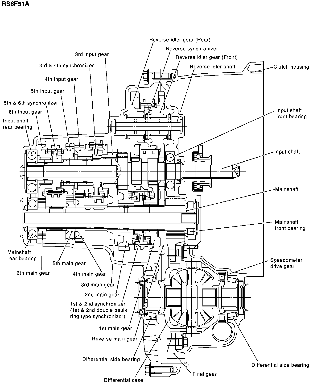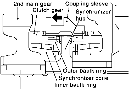 Double-cone synchronizer is adopted for 1st and 2nd gears to reduce operating force of the shift lever.