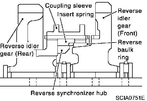 The gear can be matched smoothly in a structure by setting synchronizer hub, coupling sleeve, baulk ring and insert spring to reverse gear, and letting gear be synchronized.