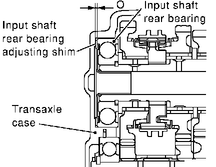Input Shaft End Play- When adjusting input shaft end play, select adjusting shim for input shaft bearing. To select adjusting shim, measure clearance between transaxle case and input shaft rear bearing.