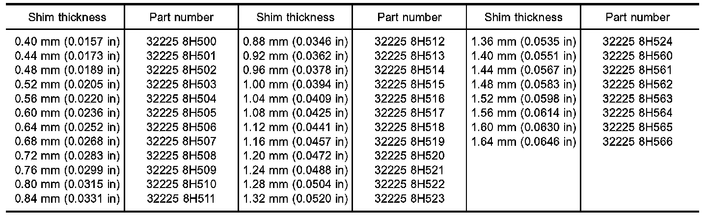 CAUTION: Only 1 adjusting shim can be selected.