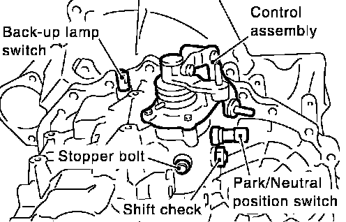 3. After removing shift check and stopper bolt, remove control assembly.