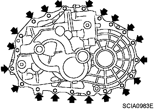 5. Remove transaxle case fixing bolts.