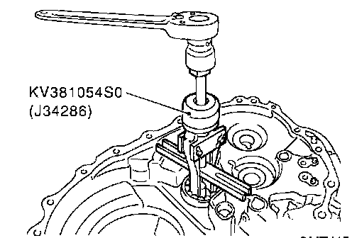 CAUTION: Be careful not to damage transaxle case.