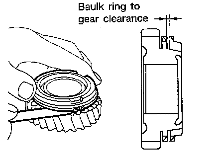 Press baulk ring against cone, and measure clearance between baulk ring and cone. If measurement is below limit, replace it with a new one.