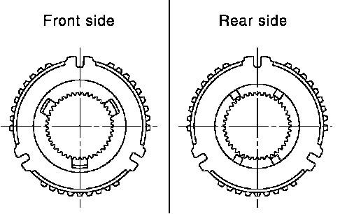- If any crack, damage, or excessive wear is found on cam face of baulk ring or working face of insert, replace it.