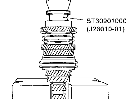 15. Install snap ring onto input shaft, and check that end play (gap between snap ring and groove) of 6th bushing satisfies standard.