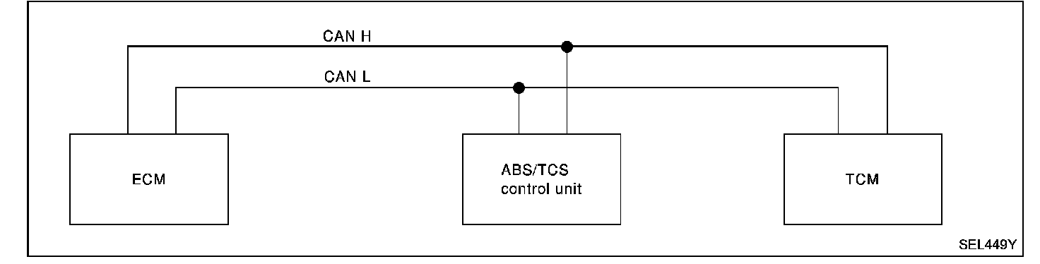 System DescriptionCAN (Controller Area Network) is a serial communication line for real time application. It is an on-vehicle multiplex communication line with high data communication speed and excellent error detection ability. Many electronic control units are equipped onto a vehicle, and each control unit shares information and links with other control units during operation (not independent). In CAN communication, control units are connected with 2 communication lines (CAN H line, CAN L line) allowing a high rate of information transmission with less wiring. Each control unit transmits/receives data but selectively reads required data only.