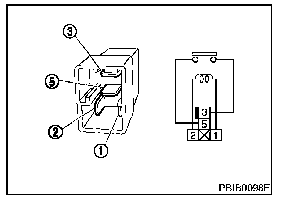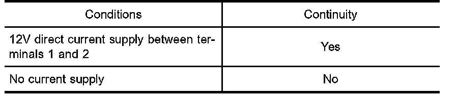 1. Apply 12 V direct current between relay terminals 1 and 2.