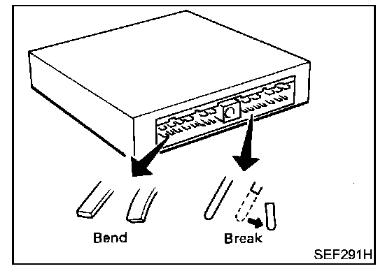 - When connecting or disconnecting pin connectors into or from ECM, take care not to damage pin terminals (bend or break).
