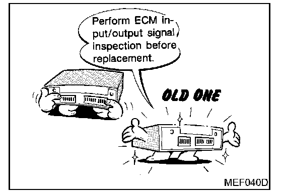 - Before replacing ECM, perform "ECM Terminals and Reference Value" inspection and make sure ECM functions properly.