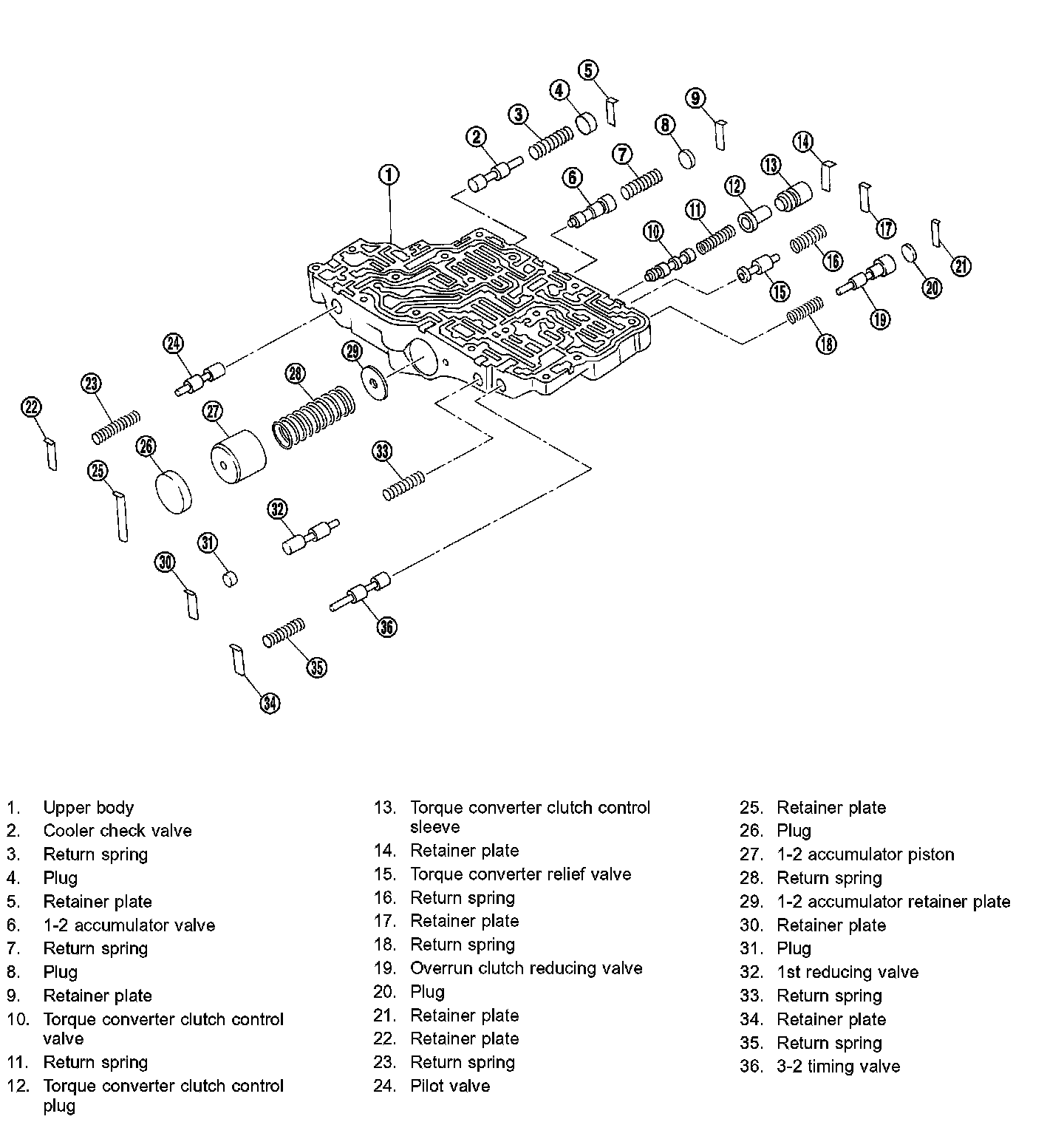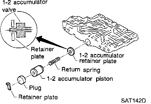 - Install 1-2 accumulator valve. Align 1-2 accumulator retainer plate from opposite side of control valve body.