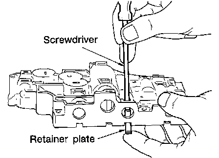 b. Remove retainer plates while holding spring, plugs or sleeves.
