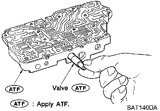 1. Lubricate the control valve body and all valves with ATF. Install control valves by sliding them carefully into their bores.