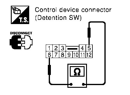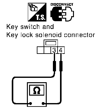 - Check continuity between terminals of the key switch and key lock solenoid connector.