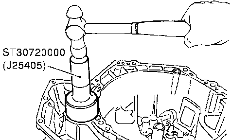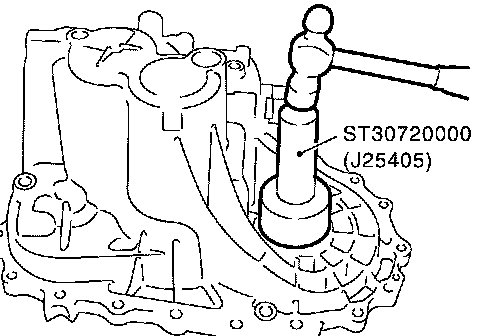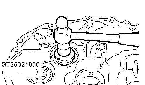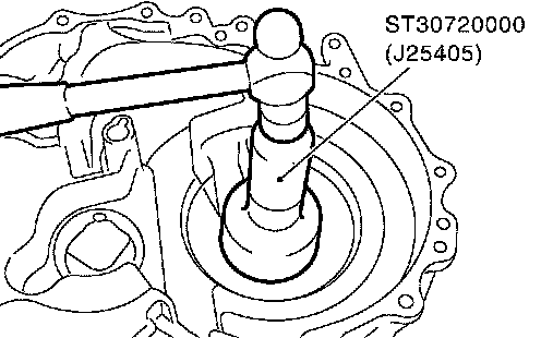 25. Using a drift, install differential oil seal until it is flush with end face of transaxle case.