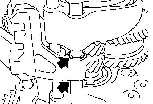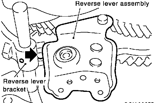 b. While lifting reverse shift fork, align cam with reverse bracket.