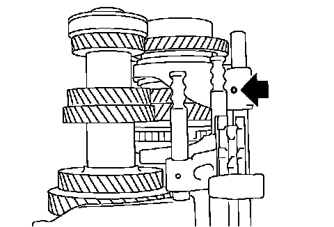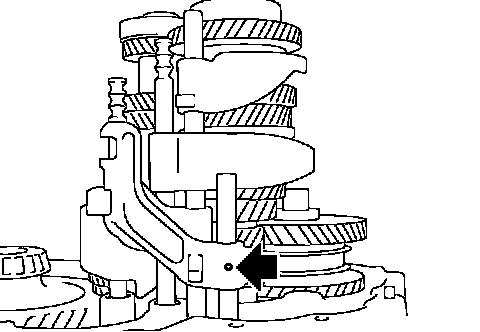 18. Install retaining pin onto 5th-6th shift fork.