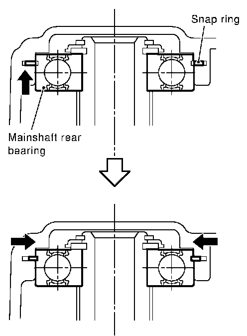 b. Temporarily install snap ring of mainshaft rear bearing into transaxle case.