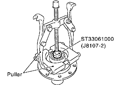 3. Using a drift and puller, remove differential side bearing (clutch housing side).