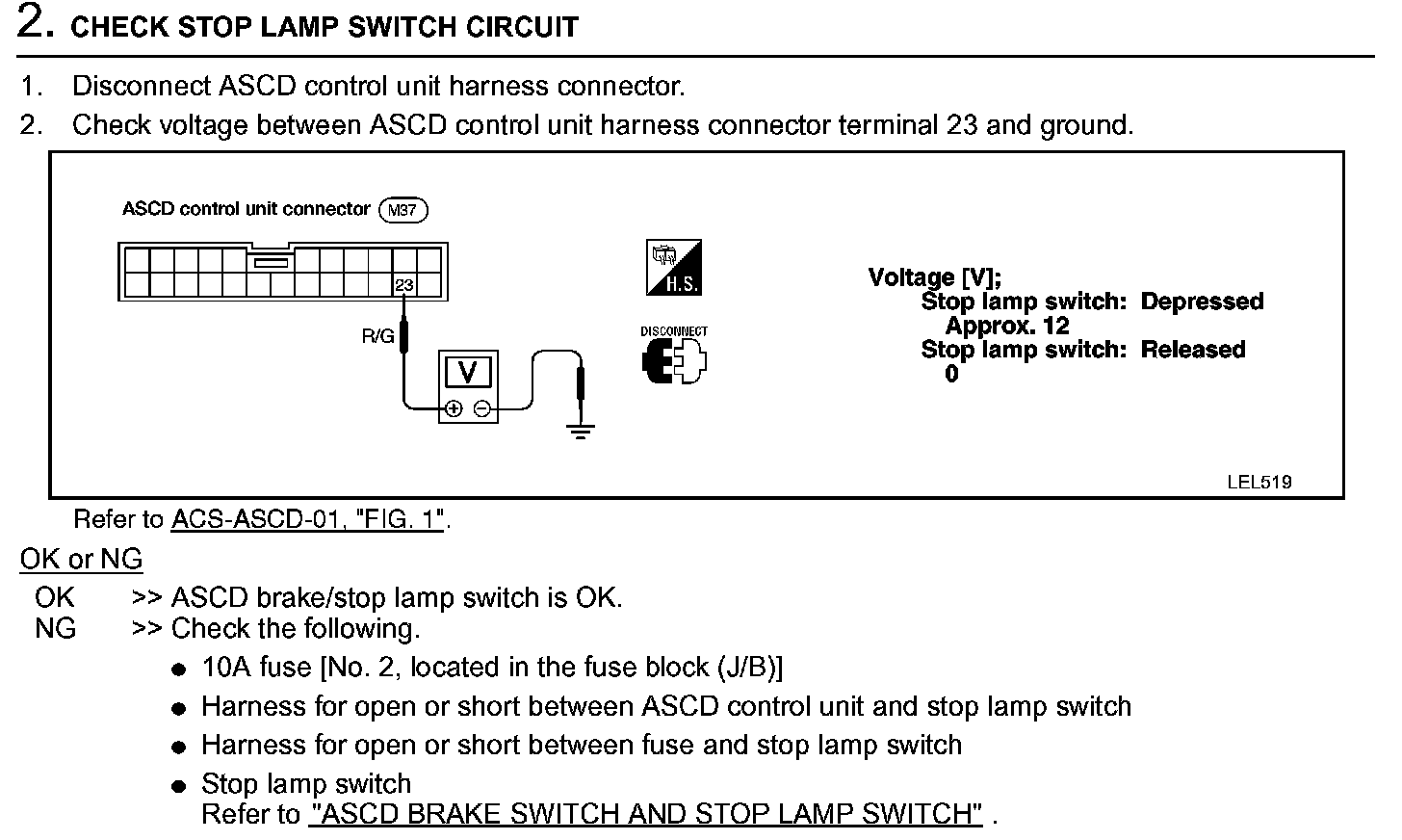 ASCD Brake/Stop Lamp Switch Circuit Check