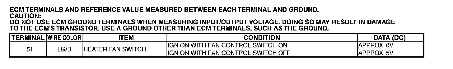 ECM Terminals And Reference Value: