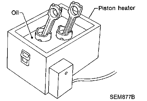 2. Heat piston to 60° to 70°C (140° to 158°F) and assemble piston, piston pin, connecting rod and new snap ring.