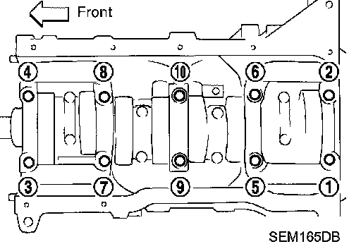 6. Loosen main bearing caps in numerical order as shown in figure.