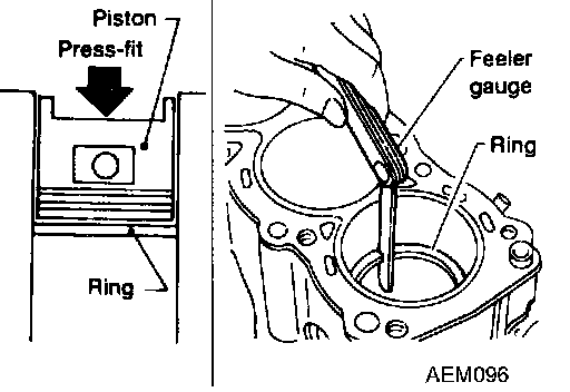 If out of specification, replace piston ring. If gap exceeds maximum limit with a new ring, rebore cylinder and use oversized piston and piston rings. Refer to Engine; Specifications; Mechanical.