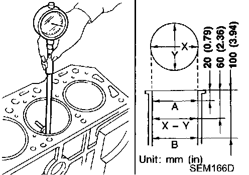 If it exceeds the limit, rebore all cylinders. Replace cylinder block if necessary.