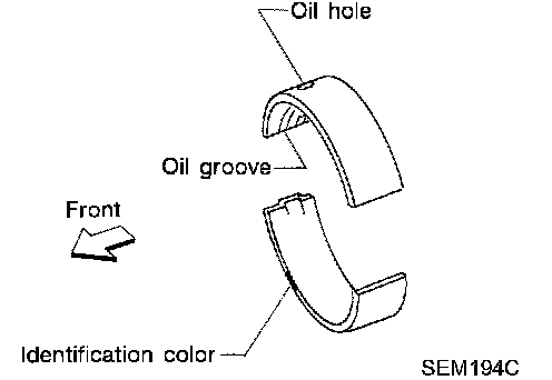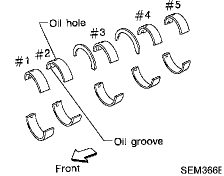 ^ If incorrect bearing clearance exists, use a thicker or undersized main bearing to ensure specified clearance.