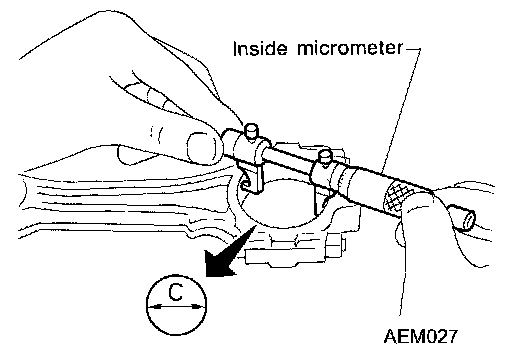If it exceeds the limit, replace bearing. If clearance cannot be adjusted using any standard bearing grade, grind crankshaft journal and use undersized bearing. Refer to Connecting Rod Bearing; Specifications; Mechanical.