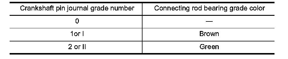 ^ If a new bearing, crankshaft or connecting rod is replaced, select connecting rod bearing according to the table shown.