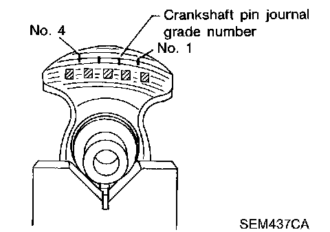 6. If the crankshaft is replaced, select thickness of main bearings as follows: