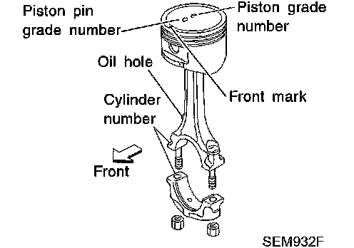 ^ If cylinder block or piston is replaced, match piston grade with grade number on cylinder block lower surface.