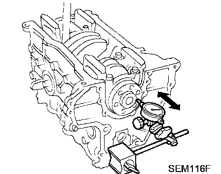 5. Measure crankshaft end play. Refer to Crankshaft, Engine.