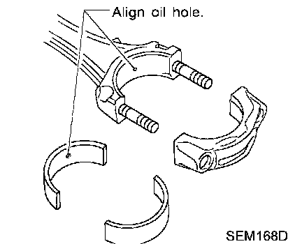 ^ Install bearings so that oil hole in connecting rod aligns with oil hole of bearing.