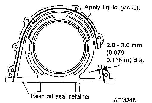 b. Apply a continuous bead of RTV Silicone Sealant to rear oil seal retainer.