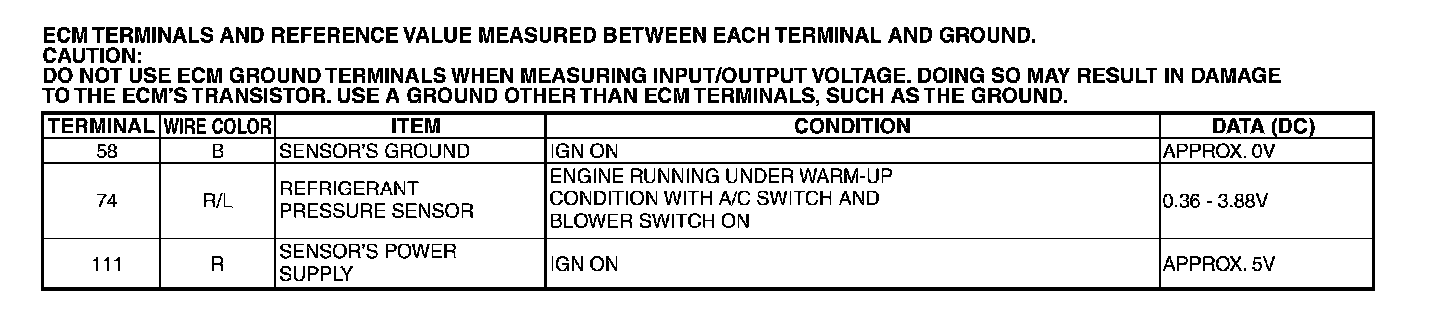 ECM Terminals And Reference Value: