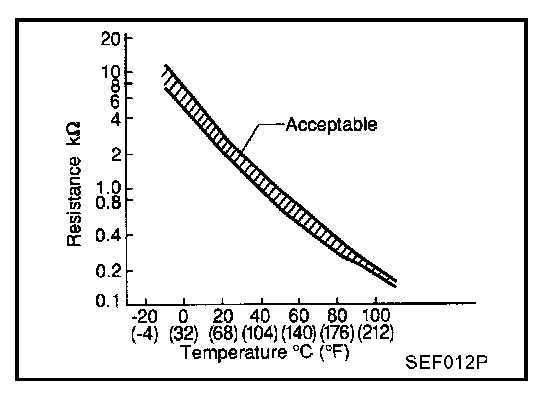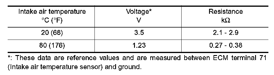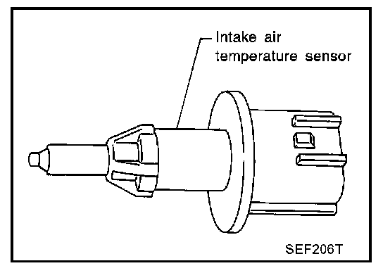 The intake air temperature sensor is mounted to the air duct housing. The sensor detects intake air temperature and transmits a signal to the ECM.