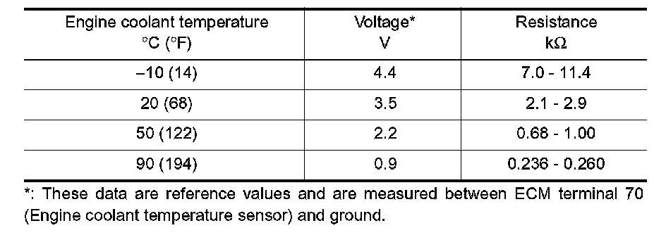 CAUTION: Do not use ECM ground terminals when measuring input/output voltage. Doing so may damage the ECM's transistor. Use ground other than ECM, such as body ground.