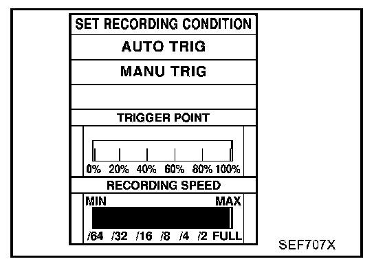 The recording time after the malfunction detection and the recording speed can be changed by "TRIGGER POINT" and "Recording Speed". Refer to CONSULT-II OPERATION MANUAL.