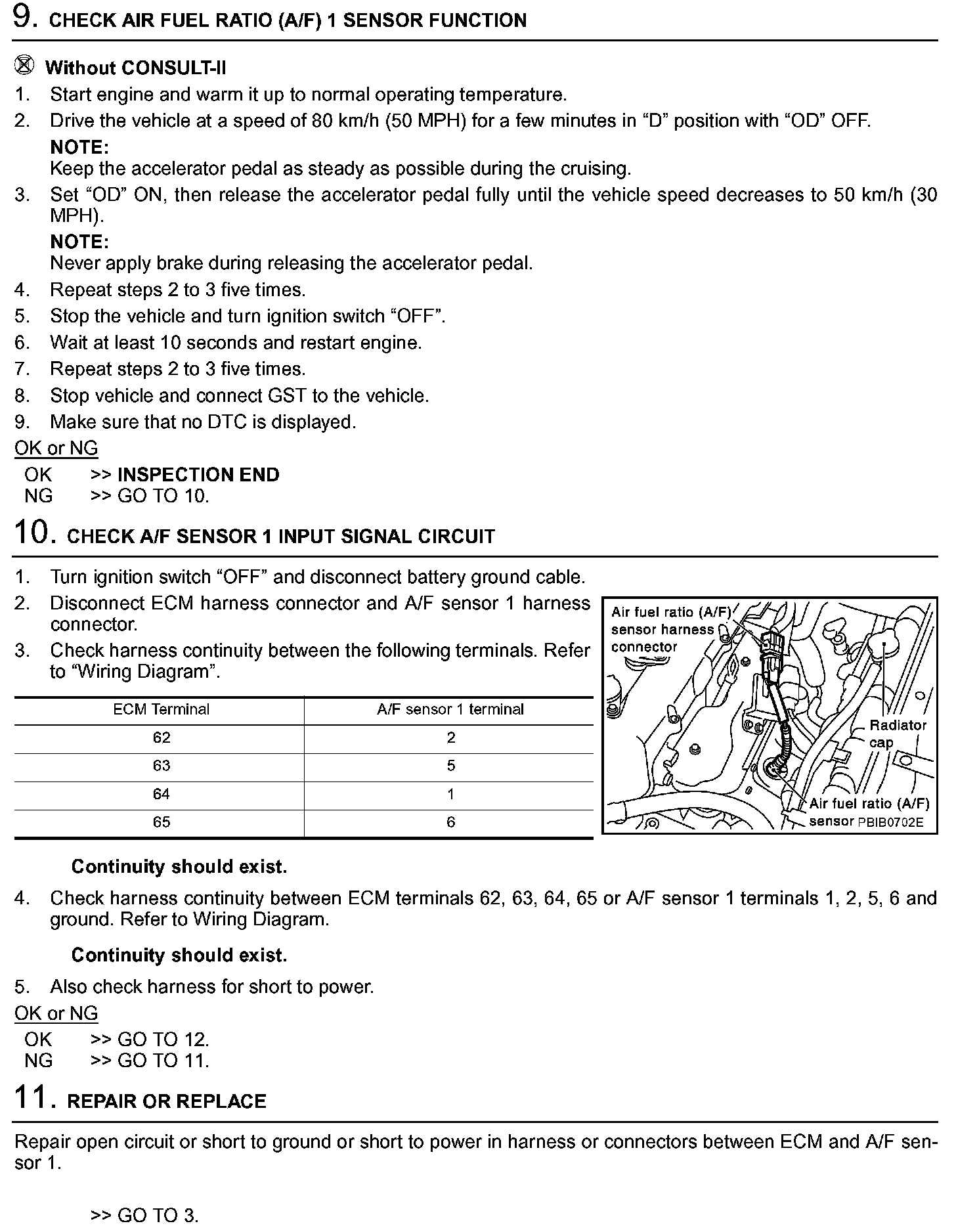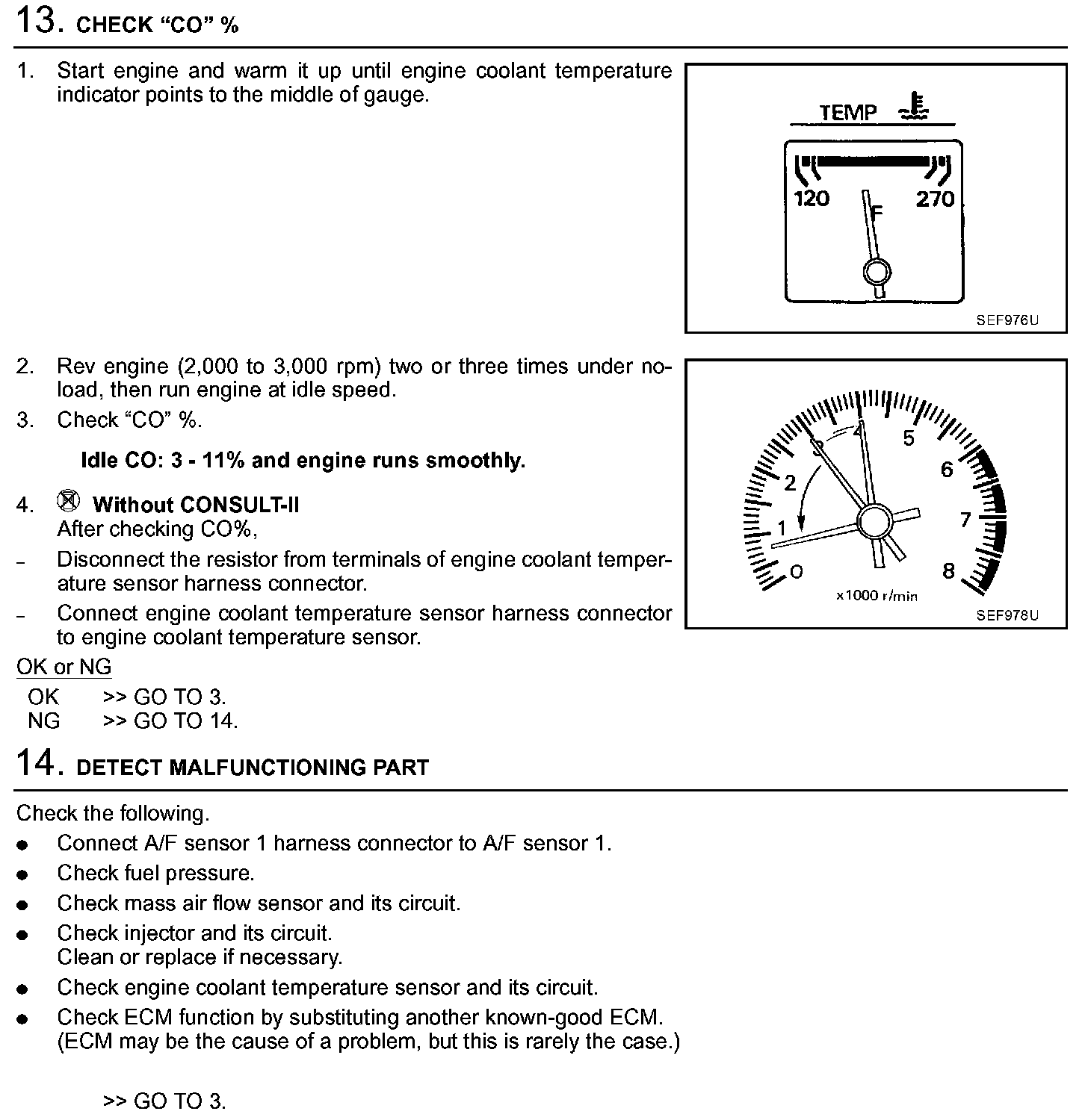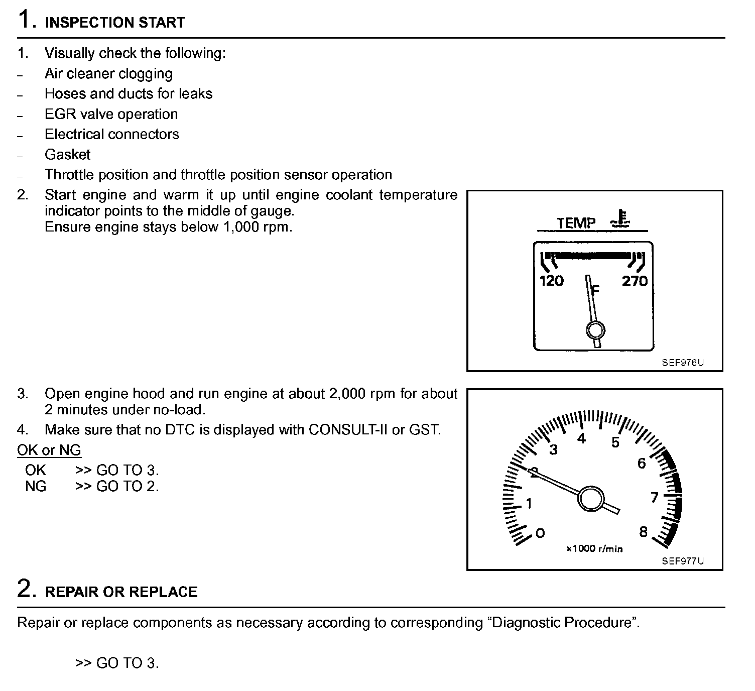 2. On models equipped with air conditioner, checks should be carried out while the air conditioner is "OFF".