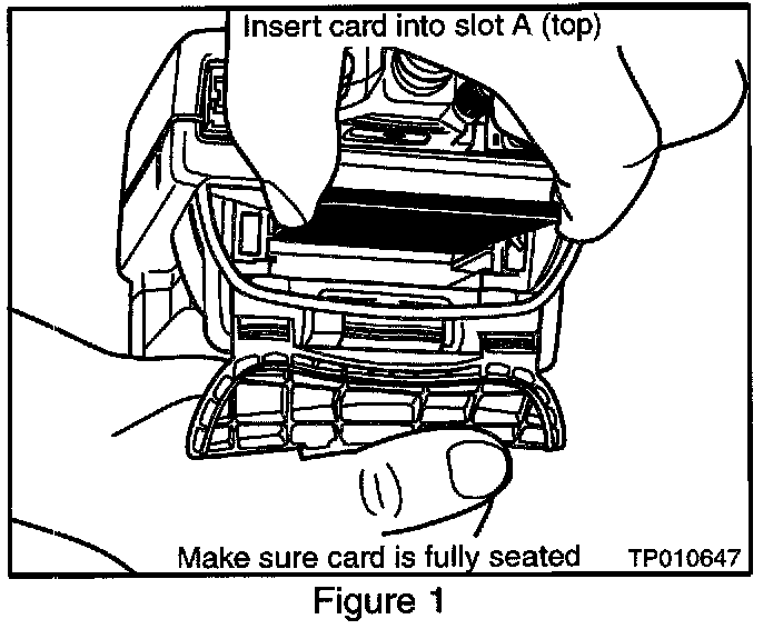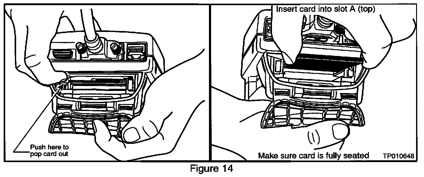 14. Remove the ECU Reprogramming card from slot A of CONSULT-II and install the Diagnostics (red/white) card into slot A (see Figure 14).