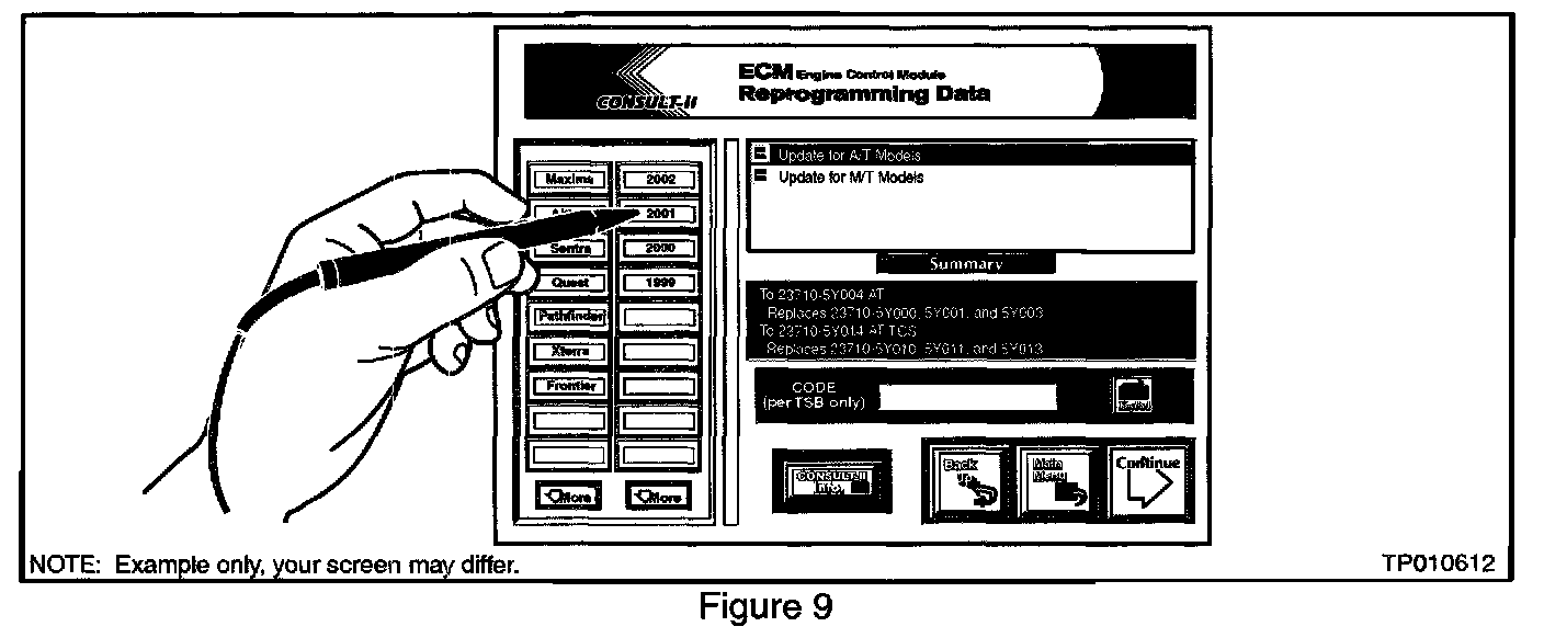 34. Select the correct ECM program to install from the choices on the CONSULT-II screen (see Figure 23).