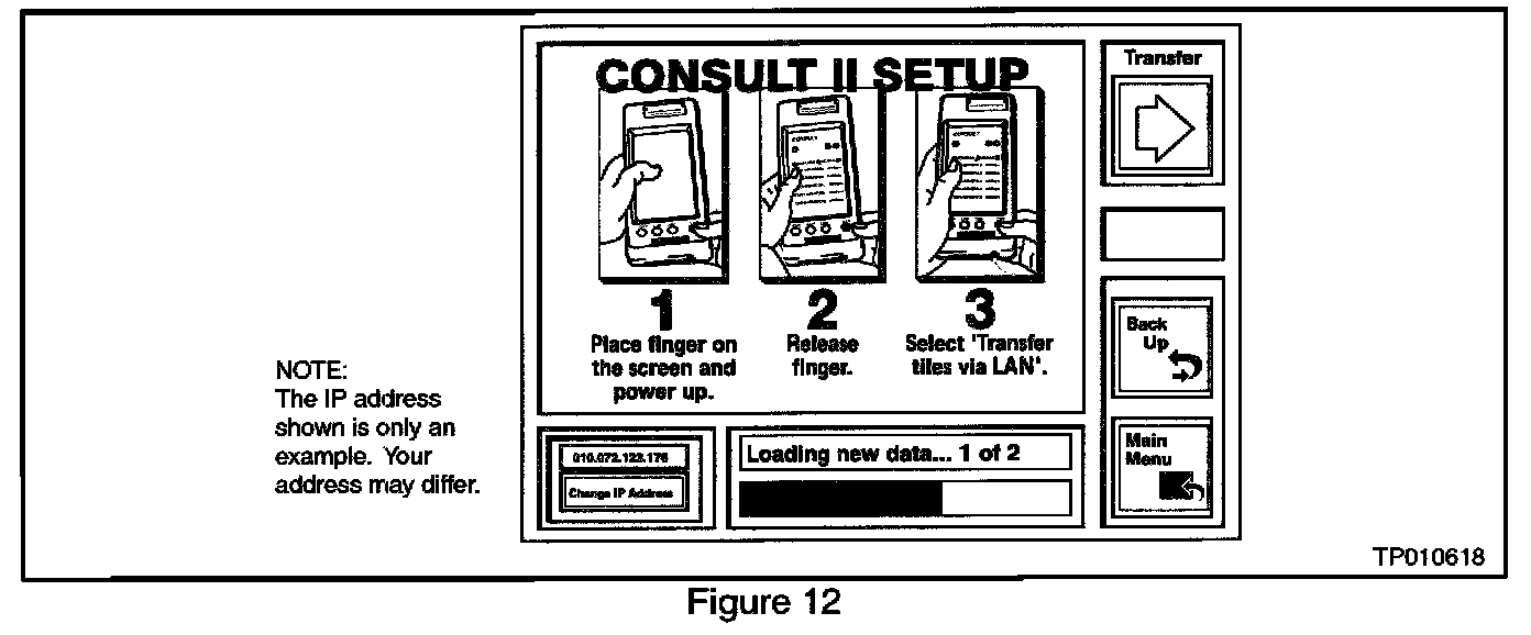 11. When transfer is complete select the "MAIN MENU" button on ASIST. Turn off CONSULT-II and disconnect the AC power cord and the Ethernet cable from CONSULT-II.