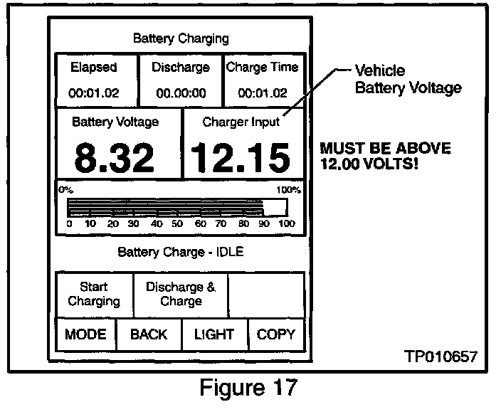 A. If the vehicle's battery charge ("Charger Input") is less than 12.0 volts: